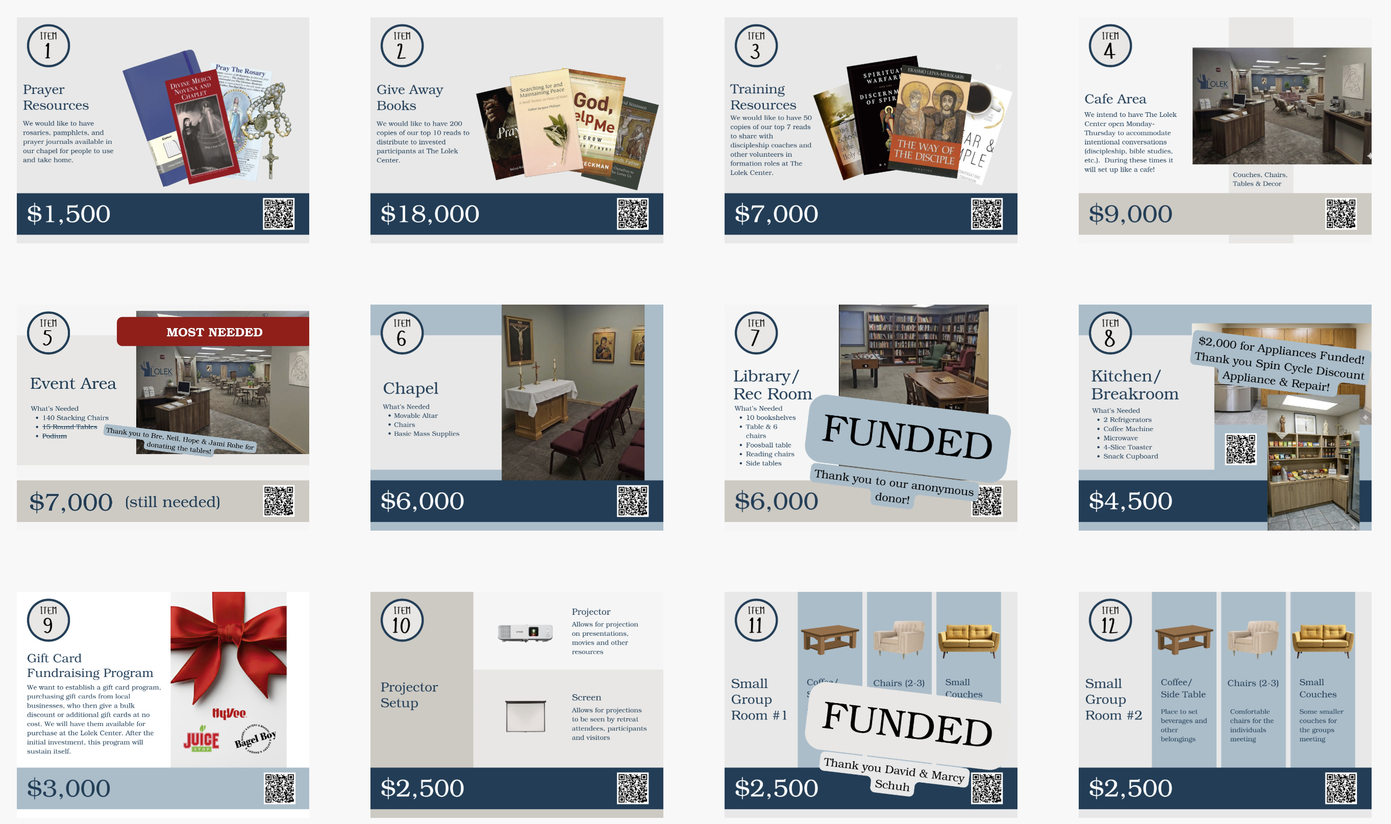 An anonymous couple has committed to furnishing our library and rec room with bookshelves, comfortable reading furniture, and a brand new foosball table.